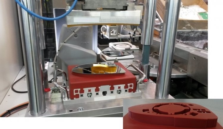 Posage pour l'assemblage par pressage d'un miroir de rétroviseur sur son support dans une cellule robotisée.